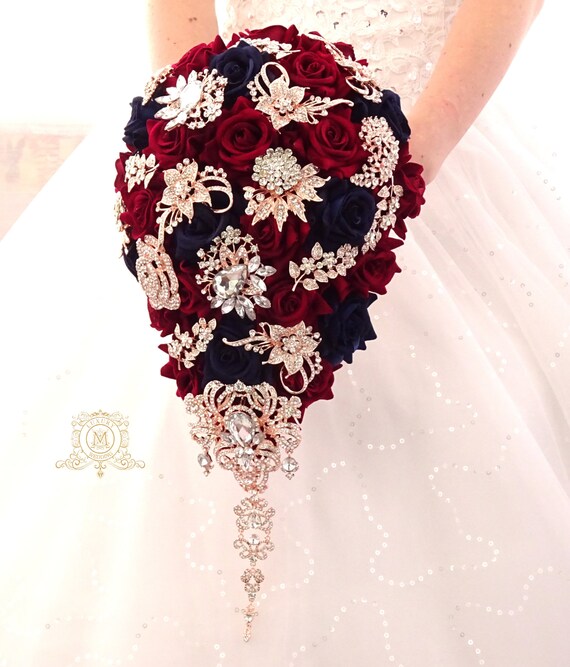 Burgundy And Navy Blue Rose Gold Teardrop Cascading Brooch Etsy